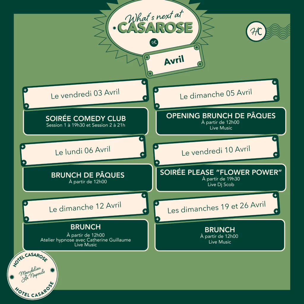 Soirées à thèmes, concerts, spectacles, brunchs et musique live… Savourez des moments inoubliables au rythme de l’été.